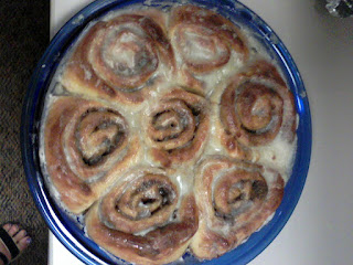 I had seven calls; three of which I was able to answer since I was at a work off site*. (KylAE, Devo and Brad actually got a hold of me. Kudos to Karla for the first call... and both Mom and Biggie Sue for singing. I totes saved the message from Glo cause not only did she 1) give birth to me but 2) has an awesome off-key and gloriously happy singing voice.) And my work peeps did wish me a HBD when I arrived. Not to mention, Trish the Dish spent 4 hours laboring over those those amaze-balls cinnamon rolls.